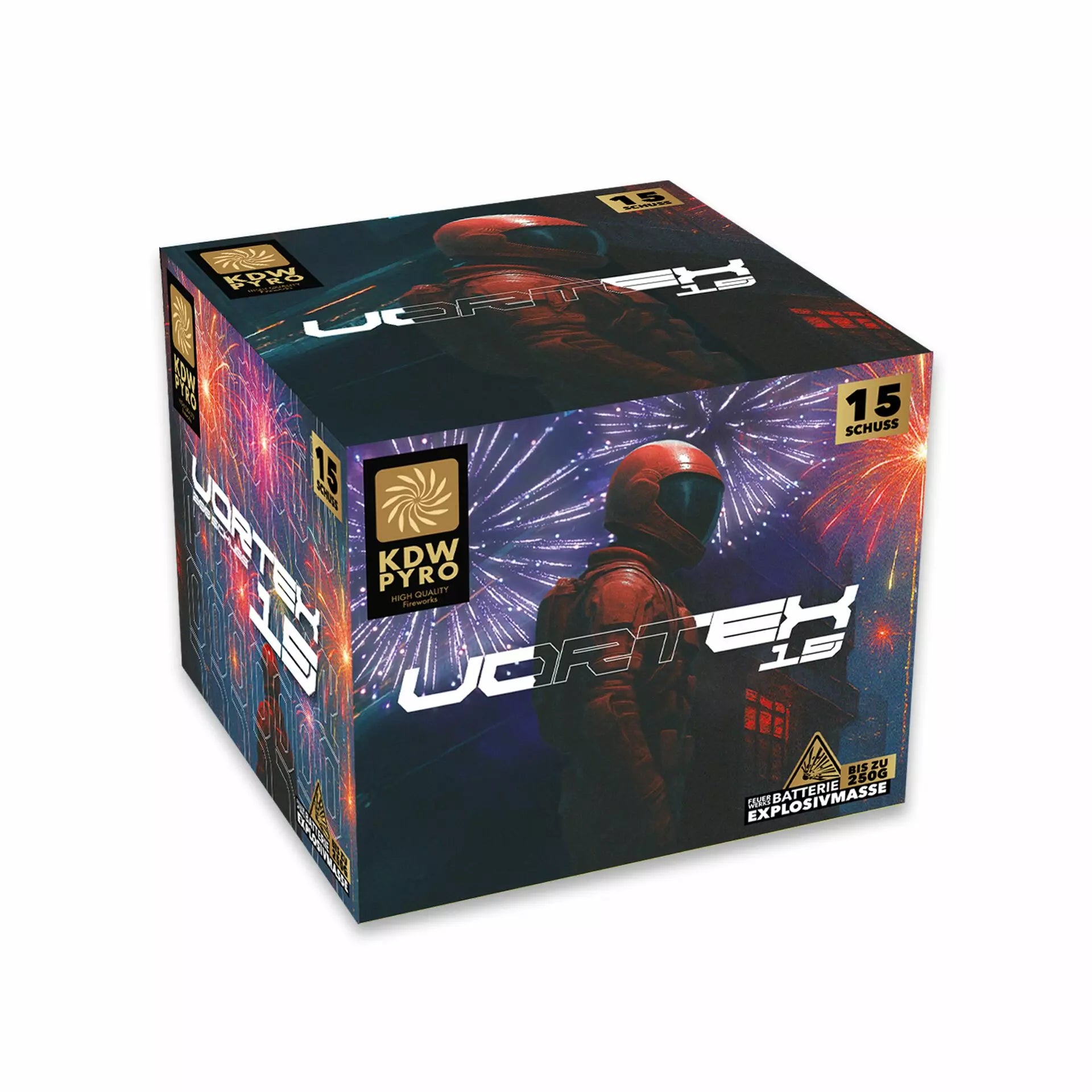 Runde Batterie mit 15 kräftigen Effekten. Roter, grüner und weißer Strobe, kombiniert mit Brokatpalmen und kräftigem Abschluss. Klein, aber mächtig! Auch hier überzeugt KDW mit echter Profiqualität.